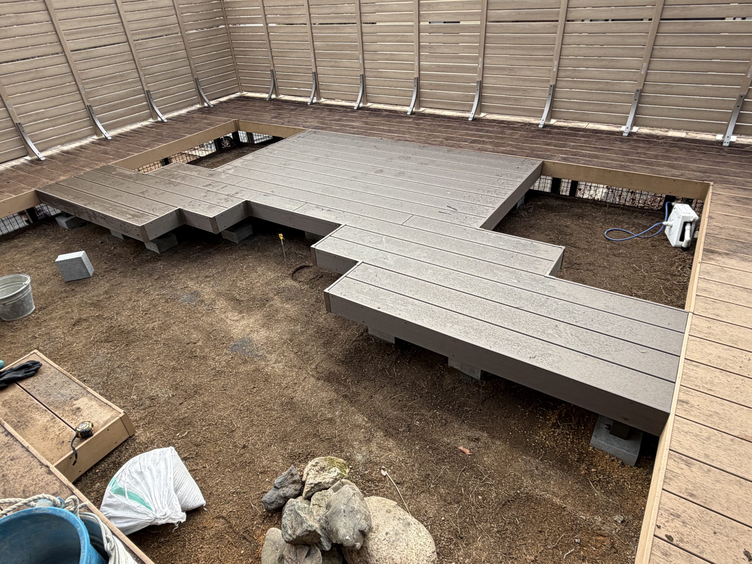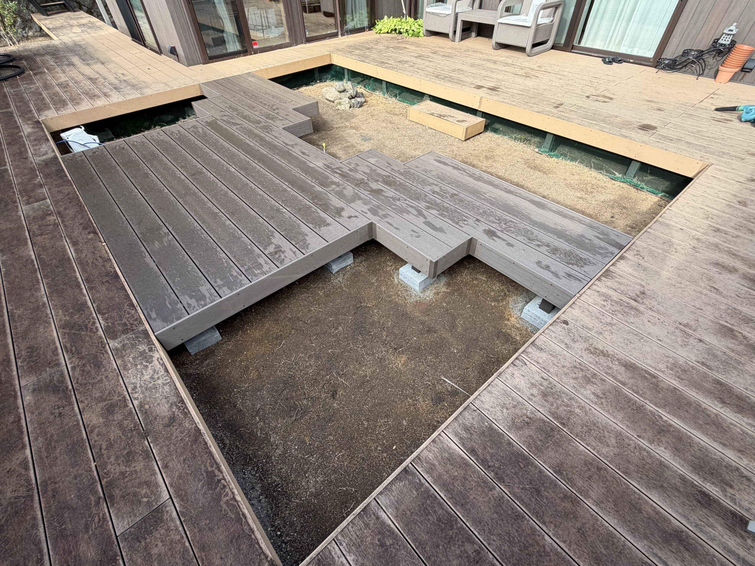 中庭のデッキに渡り廊下を取り付けるご依頼をいただきました!お客様のイメージを,元にできる限り表現させていただきました。